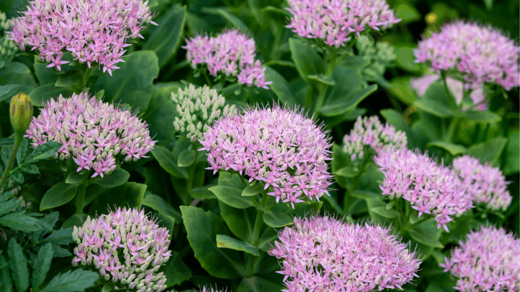 Combinaties: Sedum staat prachtig naast siergrassen, Echinacea of herfstasters, die samen een kleurrijk nazomerbeeld vormen.