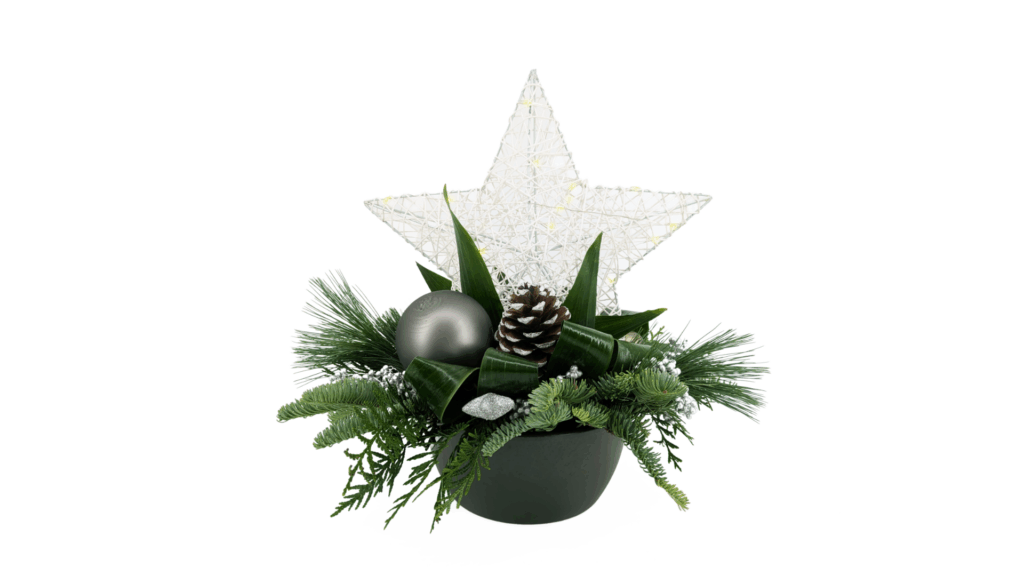 • Groen naar keuze (bijvoorbeeld nobilis, pinus, conifeer, eucalyptus of buxus)